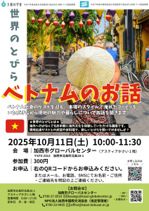今回は「ベトナムのお話」。ベトナム式のコーヒーを飲みながら、ゲスト講師とのお話で新しい出会いと発見をお楽しみください。