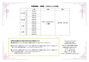 | 英語 (開講中) | ・初級クラス(日常会話から始めたい方) ・中級クラス(ステップアップしたい方) ・上級クラス(テーマに沿ってディスカッション) ・TOEICプラス(英語力やTOEICスコアアップを目指す方) |